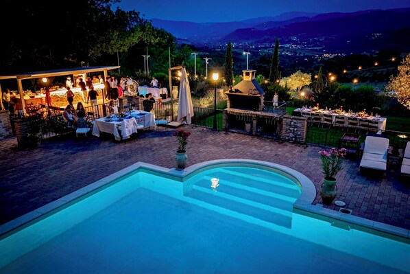 Im Garten ist einem originalen Holzofen für Pizza und Brot. Es gibt einen Grill am Pool und eine voll ausgestattete Außenküche mit Spüle, 3-Flammen-Herd, Kühlschrank und Spülmaschine.