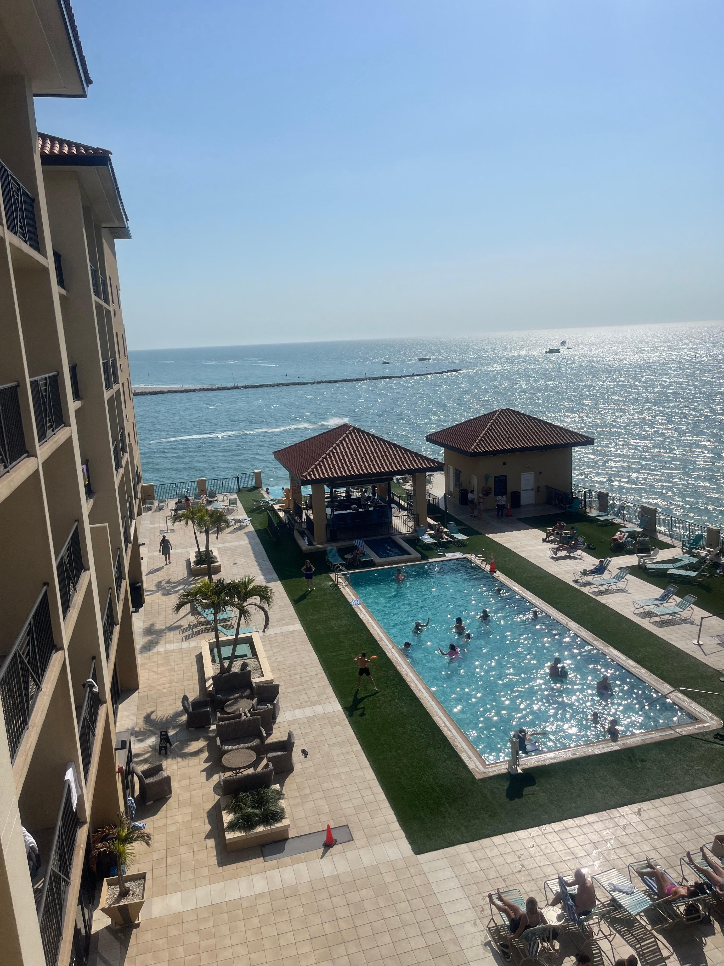 Had a gulf view which was incredible. Absolutely no complaints about the room itself. However, a horrendous smell plagued the hallways most of our stay. Our last day they tried covering it up with some tropical scents. It smelt like tropic vomit. The pool was nice but chairs are taken fast. Would recommend wearing sandals to the pool as the turf gets super hot in the sun. Breakfast is alright. No protein options and pancakes are pretty small. Yogurt options are great though. We saw many dolphins from our balcony and enjoyed sitting there.