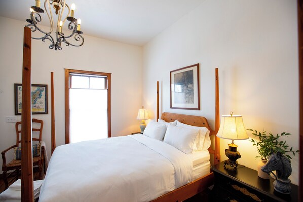 Charming historic stay in the heart of Sturgeon Bay! This studio retreat offers a warm and oh-so-cozy four-post bed, walk-in shower, a smart TV, and steps from the waterfront, all the shops and festivals!