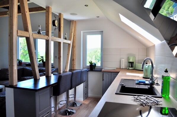 Gemütliche Wohnung mit Kamin und wundervollem Blick auf die Thüringer Berge