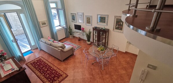 We stayed 3 nights and I wish I would have booked a longer stay. The apartment is beautifully furnished with very nice quality furniture, decor, and linens. Beds were very comfortable. Spacious, clean bathroom. There was a charming patio off the master bedroom. The kitchen was well appointed, new appliances, with a nice set of pots and pans, silverware and dishes (no odds and ends!). Pantry staples were also included. We liked the open concept main floor. Washer and laundry tub were great, and laundry soap was provided. The location was perfect! Off a side street very close to the Corso Umberto of Taormina with great restaurants and shopping, A 10-15 minute walk to the bus station and tram to the beaches. Check in was good, and on-site manager was very helpful, even though I don’t speak Italian! Will definitely rebook this property!