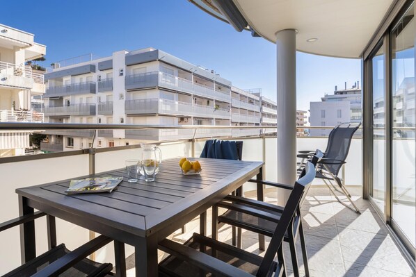 Die Wohnung mit Wi-Fi im Preis inbegriffen, hat 3 Schlafzimmer, 2 Badezimmer, Wohnzimmer, große Küche und eine Terrasse, von der Sie das Meer leicht sehen können.
