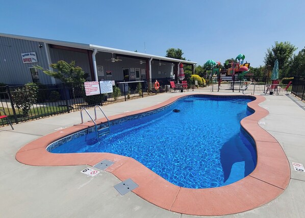 Enjoy cabin #64 at Heritage Acres Park with swimming, splash pad & more!