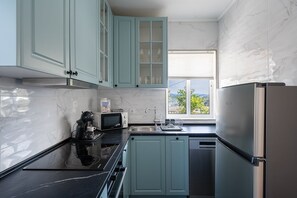 La cuisine est entièrement équipée de tout ce dont vous avez besoin pour préparer un délicieux repas, y compris une plaque de cuisson électrique, un four, un micro-ondes, une cafetière et les ustensiles de cuisine essentiels. Un lave-linge est également disponible pour votre confort.