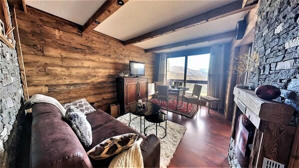 50m from ski slopes, 12nd floor, swimming pool, balcony, fireplace or stove, tv, ski locker, 37m²