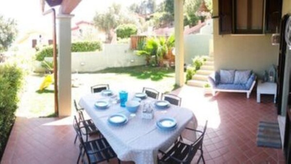 Das Haus selbst ist modern und sehr geschmackvoll und bequem eingerichtet, es fehlt an nichts. Vor allem für Kinder gibt es großzügig Spielsachen für innen und außen. Die Küchenausstattung ist bemerkenswert üppig für ein Ferienhaus und modern, außerdem gibt es einen großen Grill und das Wichtigste: eine ordentliche Spülmaschine :) Neben Bad mit Dusche, Bidet, etc. gibt es eine herrliche Außendusche, mit der unsere Kinder viel Freude hatten. Jedes Zimmer hat einen TV und eine separate Klima-Anlage, die auch wärmt. Im Garten hatten unsere Kinder außer einer Rasenfläche auch einen großen Parkplatz mit abschließbarem Tor zum Toben. In der Umgebung stehen viele Ferienhäuser, abseits der Hauptstraße: es war sehr ruhig, kein Straßen- oder Partylärm. Der Strand ist vom Garten aus zu sehen, die Wellen abends zu hören, in 3 Minuten per Auto, in 10 Minuten zu Fuß erreichbar. Ein Auto ist grundsätzlich zu empfehlen. Es gibt traumhafte Strände in wenigen Minuten Fahrzeit und in Villasimius gute Einkaufsmöglichkeiten, die auch Sonntags offen haben.