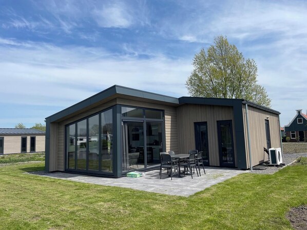 L'hébergement Spacious, modern holiday home for 6 people with 3 bedrooms, 2 bathrooms, terrace, garden and free Wi-Fi. Detached and located at the outer edge of the park. offre un jardin et bien d'autres services et équipements. Les clients peuvent rester connectés avec le Wi-Fi dans les chambres.