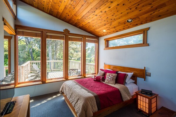 SWEET HOMES RENTALS bringt Ihnen das Zen House, einen ruhigen Strandurlaub in Yachats. Dies ist ein romantisches, einzigartiges Zen-Haus mit einfachem, sicherem Zugang zu einem wunderschönen Sandstrand und dem Blick auf das Meer durch Bäume. Dieses Haus verfügt über einen schönen Wohn- / Essbereich, einzigartige Möbel und Dekor sowie ein Oberdeck. Entspannen und erfrischen Sie sich im asiatischen Bade- und Wellnessbereich, der mit einem Gasherd, einer Zedersauna, einer japanischen Zwei-Personen-Badewanne und einer Ziegeldusche aus Glas ausgestattet ist, die in den Garten ragt, um die Morgensonne einzufangen, die durch den Pool fällt Das umgebende Grün bietet einen Hauch Natur beim Duschen. Wachen Sie morgens auf und wandern Sie in Ihrem privaten Garten oder sitzen Sie und hören Sie den Geräuschen des Meeres und der Vögel. Oder Sie trinken vielleicht später Tee, Kaffee oder Wein auf dem Oberdeck, während Sie den Wellen lauschen und auf das Meer schauen. Dieses Haus bietet eine Fülle von Möglichkeiten, sich zu entspannen und Spaß zu haben, sowohl drinnen als auch draußen. Wenn Sie sich energischer fühlen, spazieren Sie zwei Minuten zu einem schönen, breiten Sandstrand, der kilometerweit weitergeht. Diese zwei Schlafzimmer, 2. 5 Badezimmer Haus hat ein tolles Layout. Das Hauptschlafzimmer befindet sich im zweiten Stock des Haupthauses. Das zweite Schlafzimmer ist ein freistehendes Schlafzimmer über der Garage und verfügt über ein Kingsize-Bett sowie einen eigenen Eingang. Ein zweites Geschoßdeck verbindet das Hauptschlafzimmer und das Studio-Apartment und bietet sowohl Privatsphäre als auch Trennung, auf Wunsch auch Konnektivität. Ein zweites Badezimmer mit Dusche befindet sich in der Garage unter dem zweiten Schlafzimmer. Seien Sie unser Gast und genießen Sie das wundervolle Ambiente dieses im asiatischen Stil eingerichteten Hauses. Dies ist definitiv ein einzigartiges Erlebnis, das Ihren besonderen Urlaub, Ihre Flitterwochen oder Ihren Familienurlaub ergänzen wird.