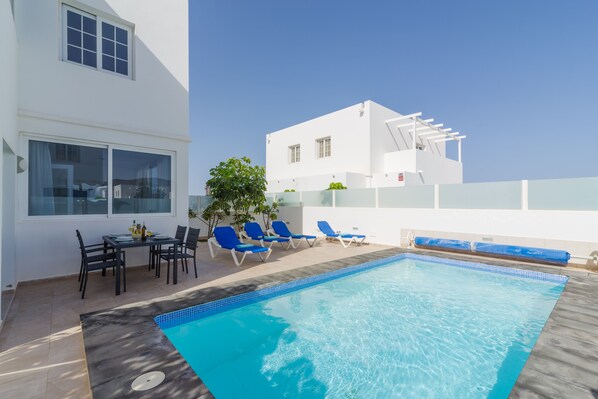 Had a great week here, good location to stroll to the marina with all its options for dining there and easy to reach a couple of supermarkets. Outside was in the sun pretty much all day, bit blowy at the start of the week but that dissipated after a few days. Nice pool, I didn’t go for pool heating, I am a bit of a wimp if one isn’t like bath water, but it was ok, I probably would go for it in future, but may be a seasonal thing and not needed most of the time. House is very well equipped, don’t think you’d miss for anything, only thing I personally missed was a pod coffee machine as I find them a bit easier on holiday than a cafetière. So I bought a little one, but that’s purely my personal preference as I need my hit instantly in the mornings :-D. You can walk to the main town took me 25 minutes, the coastal promenade is a more pleasant walk, but a rental car is easier, drove to a restaurant overlooking the salt flats just north of town, that was worth it and would also recommend booking every meal, only two of us so could just about get squeezed in when I didn’t book so would always try to. Also had a great meal in playa Blanca town at a tiny Italian called Ninen, the best mussel dish I’ve ever eaten, comes with a spicy kick in the broth, and fresh pasta main, charming little place. Also a great second hand bookstore in the town, really well organised and had so much stuff, really handy to save packing books if you’re not a Kindle fan.