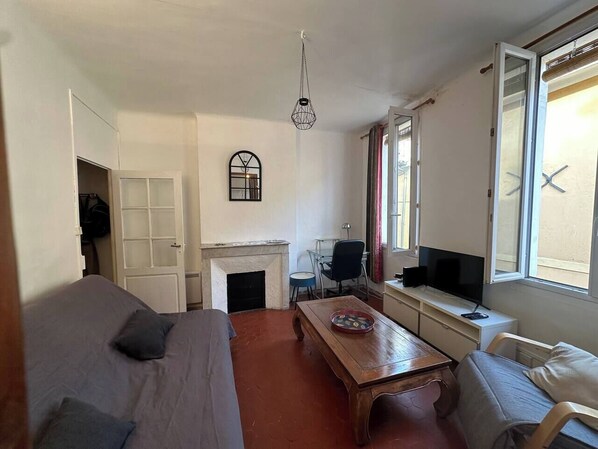 Bienvenue dans notre charmant logement de 38 m², idéal pour profiter de l'ambiance animée du centre ville d'Aix-en-Provence. Situé dans une rue piétonne, il offre un accès facile aux nombreux commerces, restaurants, bars et attraction de la ville. Il se trouve à 2 pas de la place de la Mairie et de son célèbre marché. Niché au 3ème étage sans ascenseur dans un immeuble du centre historique, il vous suffira de monter encore quelques marches pour rejoindre ce pied-à-terre confortable et pratique.