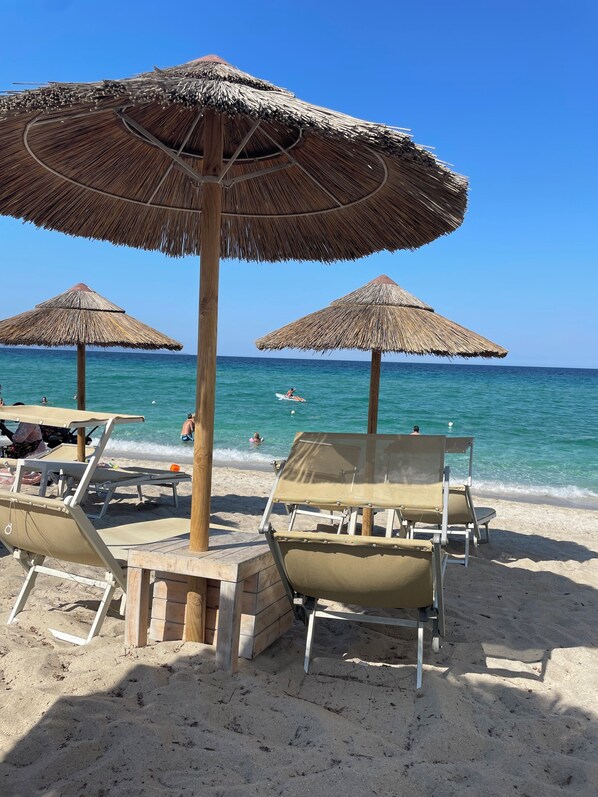 Avec la rénovation, des matériaux ont été utilisés dans le respect de l'historicité du lieu, les poutres ont été laissées apparentes et la salle de bain en céramique sarde rappelle les couleurs de la mer.