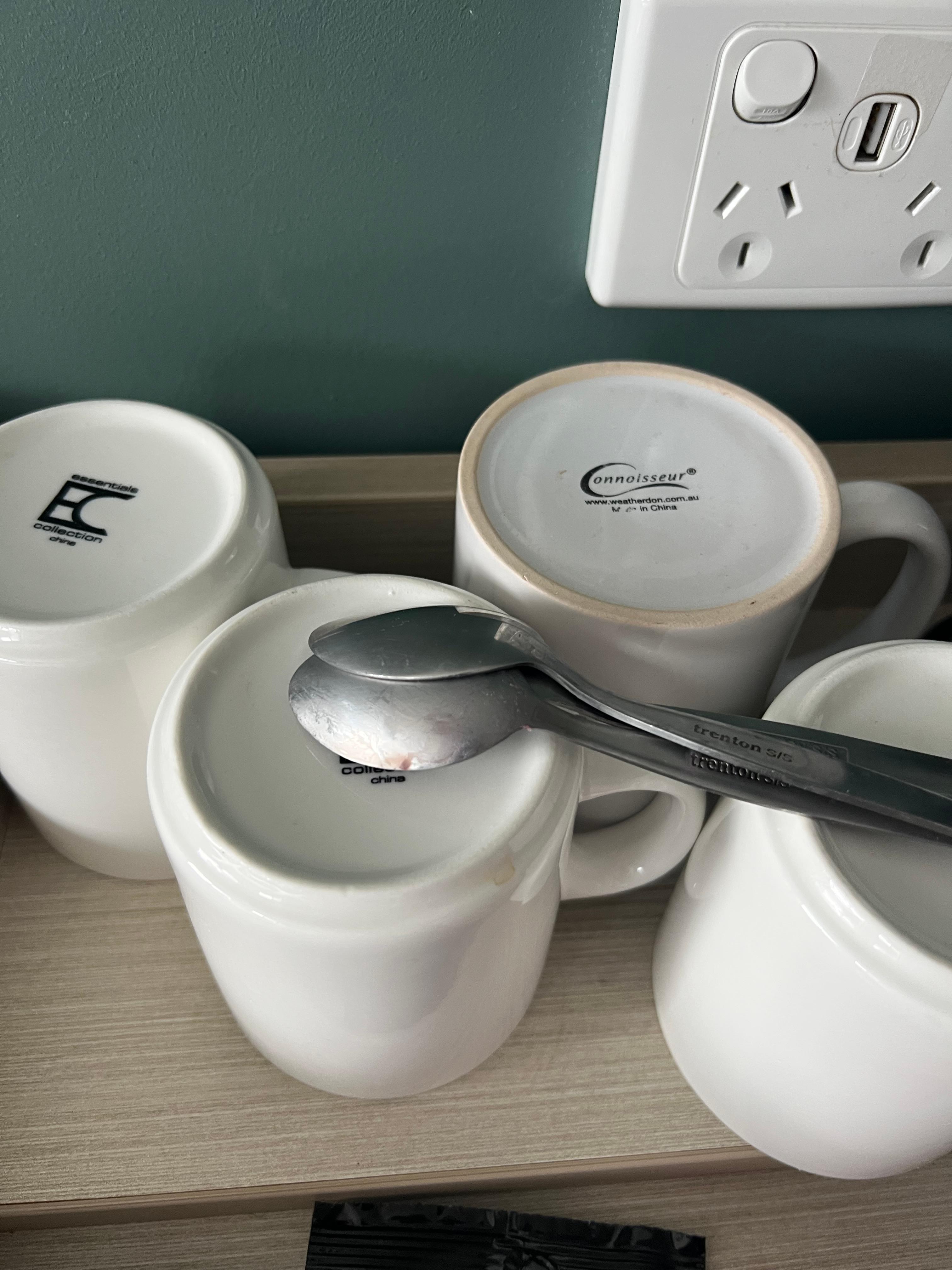 The teaspoons were still dirty(not washed), cups were dirty too.