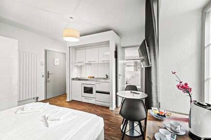 Snackbar, Coffeeshop/Café und Parken ohne Service – damit wartet dieses Aparthotel (Rauchen nicht erlaubt) auf. Den WLAN-Internetzugang in den öffentlichen Bereichen kannst du kostenlos nutzen. Darüber hinaus steht dir Folgendes zur Verfügung: Kaffee/Tee im öffentlichen Bereich, Mikrowelle im Gemeinschaftsbereich und Wäscherei. Jedes Apartment besitzt eine Fußbodenheizung und bietet zudem einen kostenlosen WLAN-Internetzugang sowie eine Kochnische. Genieße den Komfort in vollen Zügen: einen Kühlschrank und eine Mikrowelle findest du ebenso vor wie einen Balkon und eine Herdplatte. Die Handtücher werden auf Anfrage gewechselt.