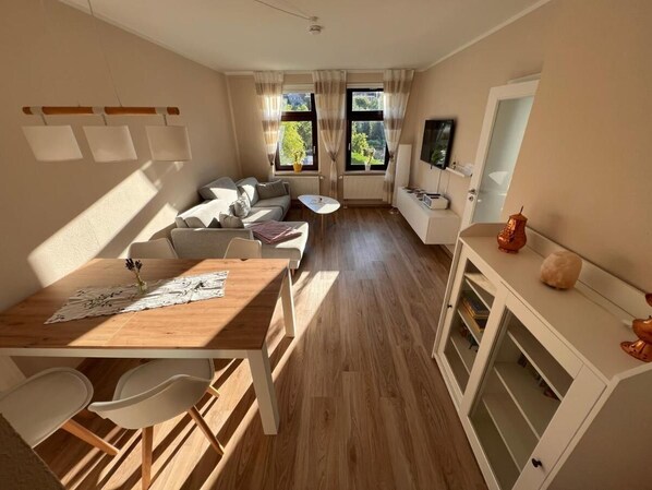 Eine wirklich sehr schöne Unterkunft. Die Wohnung ist sehr geschmackvoll eingerichtet und ist in einem top Zustand.Die Betten sind sehr angenehm und in einer mittleren Härte. Das Schlafzimmer ist auch an heißen Tagen kühl, sodass man gut darin schlafen kann. Der Empfang war mehr als liebevoll angerichtet. Wir sind mit einem kleinen Kind angereist und haben ein mit Kinderbezug bezogenes Bett vorgefunden, worüber wir uns alle wirklich sehr gefreut haben. Es waren an vielen Ecken Kleinigkeiten bereitgelegt und gestellt, dass man sich direkt willkommen gefühlt hat.Wir möchten uns hier nochmal in aller Form bedanken. Hier haben die Vermieter mit viel liebe zum Detail, Spaß daran, die Gäste zu empfangen.Wir kommen gerne wieder.Lieben Gruß aus Berlin