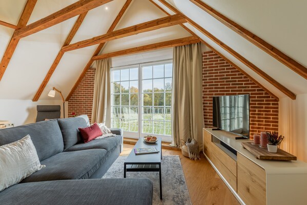 Nach 900 km Fahrt Ankunft auf einem wahren Anwesen: Klinker und Fachwerk, Weite, freundliche Mitarbeiter - und die Tochter durfte am Abend gleich noch spontan eine Runde per Pferd drehen. Obwohl wir völlig vergessen hatten, die Option zu buchen. Die Wohnung selbst haben wir währenddessen bezogen: Wunderschön, behaglich und jede Menge Platz. Der Austausch mit dem Vermieter und dessen Mutter war jederzeit angenehm und unkompliziert - wenn wir eine Frage hatten, blieb diese nie unbeantwortet, und zwar immer im positiven Sinne. Auch Check-in und Check-out waren as simple as possible - einfach per Schlüsselsafe; wir konnten also kommen und gehen, wie wir wollten. Schade, dass wir nur drei Tage und zwei Nächte Zeit hatten - wir hätten es locker auch länger ausgehalten! Herzlichen Dank an Axel von Pander samt Familie und Team, die uns alles ermöglicht haben, was wir (und v.a. die Kinder) uns (bzw. sich) gewünscht haben!