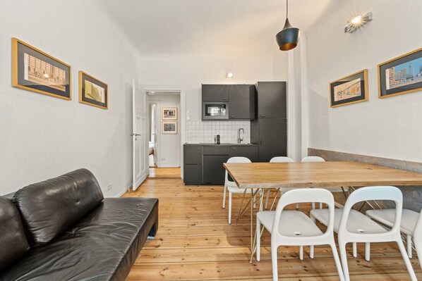 Pros:- Good location, good transport links with lots of amenities nearby.- Apartment generally clean, basic provisions suitable for a short stay. We stayed for 12 days so had to buy extras to see us through. Spare towels and extra pillows were much appreciated.- Despite neighbouring apartments having parties, this was only noticeable in the stairwells so the apartment is well insulated noise wise.- Airy and well lit, pleasant decor, no air con but the 3 fans provided were a lifesaver in 36 heat!- Communication with the host was efficient and helpful when needed.- Check-in process was seamless, even at midnight.Cons:- The advert described the apartment as having a washing machine. On arrival we discovered there are shared washers/dryers down in the cellar across the courtyard, which required booking and cost 3 per wash. Having a washing machine in the apartment was one of main reasons we chose this place so it was disappointing that this wasnt the case.- The noise detector in the apartment is pretty intrusive/annoying. Even with normal levels of noise (which didnt wake our sleeping kids) we were regularly receiving automated texts/phonecalls, as well as the alarm on it sounding intermittently. As already mentioned, other visitors were having rave parties every night, but this was not even an issue as the sound doesnt carry, so these detectors dont seem necessary.Overall our stay was pleasant and suited our needs. Would revisit.