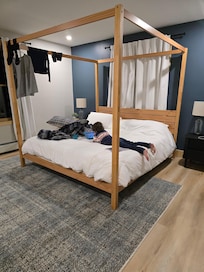We had a really great stay at Michael's house in Bethal. We travelled with adults and several teenage boys celebrating our son's 17th birthday with a few days skiing at Sunday River. The house had everything we could have needed for 3 adults and 6 teenage boys We cooked all our meals in the kitchen and it is stocked with every dish, utensil, pots, pans and more than enough space. The teens absoultely LOVED the first floor to themselves. The bedrooms, game room, hot tub etc. It was really nice to have a whole seperate floor they could call their own Everyone said it was the BEST weekend.We enjoyed the gas grill on the deck off the living room/kitchen/dining area that is hardwired so no need for a propane tank. The 2nd and 3rd floor bedrooms were lovely, everything is fresh and new and the bedding was very nice too. We hope to visit again this was an A experience.