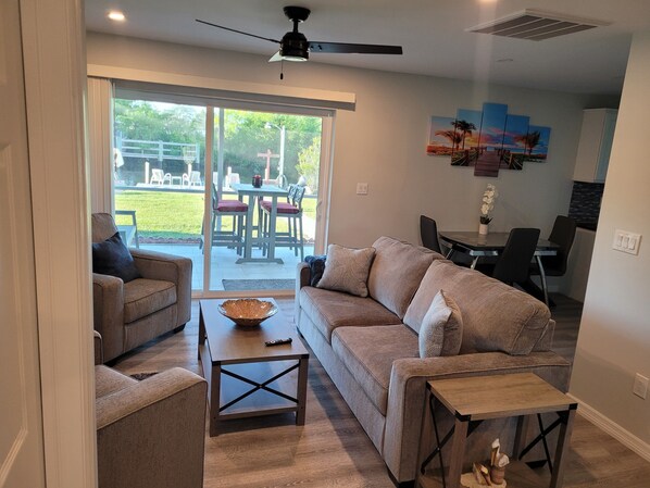 Private setting on canal. Saw a manatee and some other large water creatures from the dock! Walking distance to several great eats and beaches.