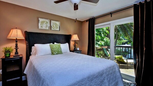 Le salon gai et décoré avec goût ouvre sur une cuisine américaine avec vibes côtières et les appareils nouveaux et mis à jour. La chambre principale dispose d'un lit king size, salle de bains, et de superbes vues tropicales! La chambre d'hôtes dispose d'un lit queen et laisse sur le pont arrière avec plus de vues et des sièges confortables. Pour les options de divertissement, consultez la smart TV dans le salon ou la télévision à écran plat dans la chambre principale.