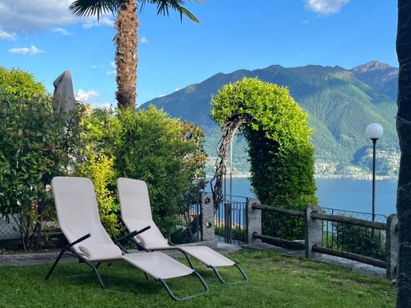 Der Aussenbereich lädt mit einer Terrasse inklusive gemütlicher Lounge und einem Garten mit Pergola und einem Granittisch zum Verweilen ein. Ob beim Geniessen der majestätischen Aussicht oder dem Ausruhen auf den bereitgestellten Liegestühlen, hier finden Sie Raum zur Erholung.