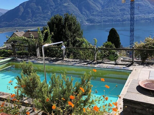 L'appartement d'environ 65 m2 avec une grande terrasse est situé au calme à Brione, sur une colline au-dessus de Locarno. De là, vous avez une vue magnifique à 180° sur le lac, les îles de Brissago et les montagnes environnantes. Vous entrez directement dans votre salon par un escalier de jardin et par votre propre terrasse, en partie couverte. Vous y trouverez une table avec quatre chaises, un fauteuil et un canapé qui peut également être transformé en lit. Une télévision et une radio sont disponibles. Par une porte, vous entrez dans la chambre à coucher avec deux lits et deux armoires. Une deuxième porte du salon donne accès à la partie arrière de l'appartement avec la cuisine et la salle de bains avec douche. Deux petits restaurants et un grotto se trouvent dans le vieux centre du village de Brione, à environ 200 m à pied de la maison, ainsi que la station de bus, près de l'église. Depuis la maison, vous pouvez entreprendre de belles randonnées à pied ou à vélo. Les rives du lac sont à 10 minutes en voiture, les Bolle di Magadino pour l'observation des oiseaux, la vallée de la Maggia, la vallée de la Verzasca et la vallée de l'Onsernone - pour ne citer que trois des vallées pittoresques - sont à proximité, ou bien vous pouvez vous promener ou aller en voiture dans les montagnes environnantes, ou simplement longer le lac ou la Maggia. A 2 km d'ici, à partir d'Orselina, il y a le téléphérique qui mène à notre montagne locale, la Cardada et la Cimetta. Locarno elle-même possède un spa et deux piscines publiques, le parc des camélias, une fauconnerie, divers musées, un château, des églises remarquables et une belle vieille ville. Ascona est à 4 km, Bellinzona, la capitale du canton du Tessin avec ses célèbres châteaux, est à 16 km, Lugano à 22 km et Milan à 85 km. Le festival du film de Locarno, Moon and Stars ou le festival de jazz d'Ascona et bien d'autres événements encore font la renommée internationale de cet appartement.