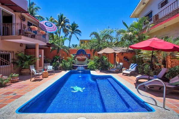Casita Ola est une casita 1 chambre / 1, 1/2 salle de bain située au deuxième étage. La casita est fraîche et lumineuse avec un grand balcon donnant sur la piscine et la fontaine. L'unité dispose de la climatisation, de nombreux espaces de rangement et d'une cuisine entièrement équipée. La suite principale contient un lit king size avec salle de bains attenante.