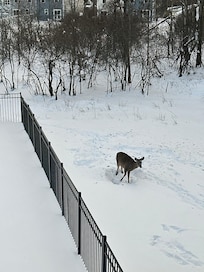 We enjoyed our stay very much. The townhome was beautiful & clean & had the necessary essentials. There were a couple of hiccups but they were addressed immediately. We really enjoyed the deer that visited us daily in the yard. My only complaint would be there was no where for coats & with it being winter we had coats & no where to hang them upon entering the house. So some type of coat rack on the wall behind the door or even in the garage would be helpful. The location was great & the space was great for entertaining for some college football & to pregame for the last Bills home game at the original stadium.