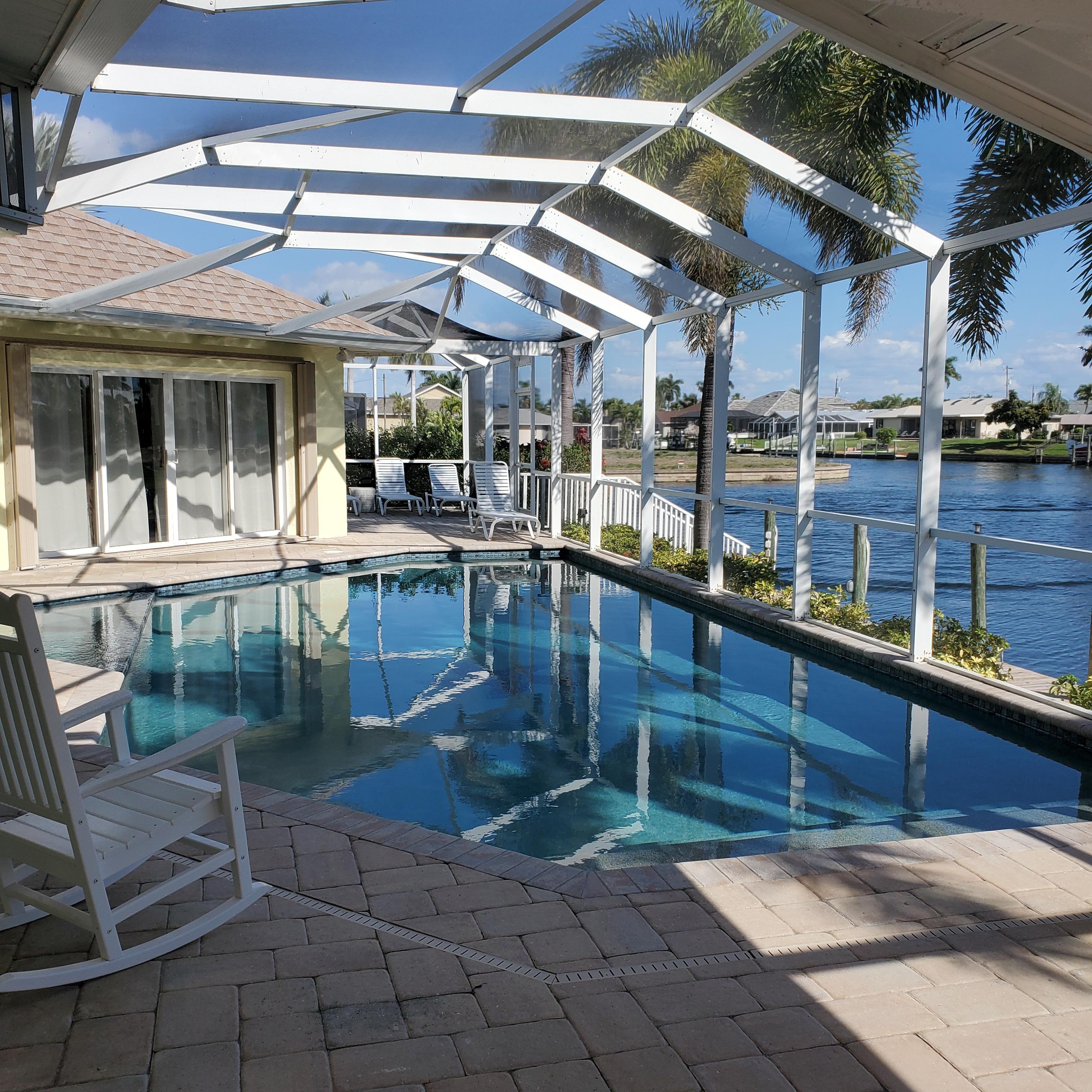 L'élégante villa est située dans la partie la plus méridionale et la plus intéressante de Cape Coral. Vue de rêve sur l'eau: C'est l'une des rares parcelles sur le canal Nimrod. Du quai et de la promenade des capitaines de 25 mètres, vous pouvez regarder les dauphins et les manetees, aller à la pêche et profiter de la vue sur le jardin tropical avec des palmiers.