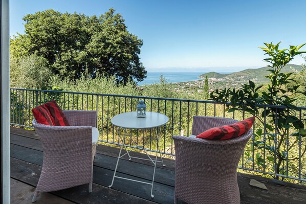 - eigene Terrasse mit traumhaftem Blick über die Landschaft zum Meer,