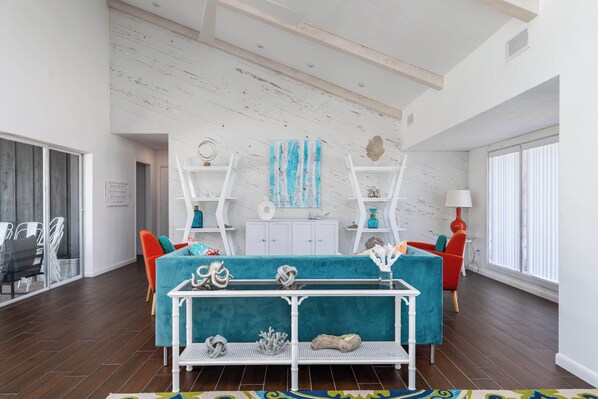 Upon arrival we were told we could not enter the home until cleaning was done (which was a few minutes after check-in time). For 10 people we were only provided 4 rolls of toilet paper and no extra paper towels, so we had to go buy more for our 3 day stay. We also planned to cook there at the house, but the kitchen was lacking a few things such as ovenmits, colander, ladle, and some lids for the pots/pans in the kitchen. We were unable to use the dishwasher because it does not open fully.The size of the den was great, however, VERY hot. We were unable to turn on the fan to help cool it down. There are too many switches in the home, so it was confusing on how to turn on which fans/lights etc. There are also no lights in the dining room where we gathered to play board games at night. The location of the house was great and a quick buggy ride to the beach. The pool was AMAZING to come back to after a long day at the beach (the outdoor shower did not work) but we were able to rinse everything off with the hose. It is a beautiful house and we enjoyed our time there, however, there was some room for improvement. Thank you for a memorable stay for my family and I! :)