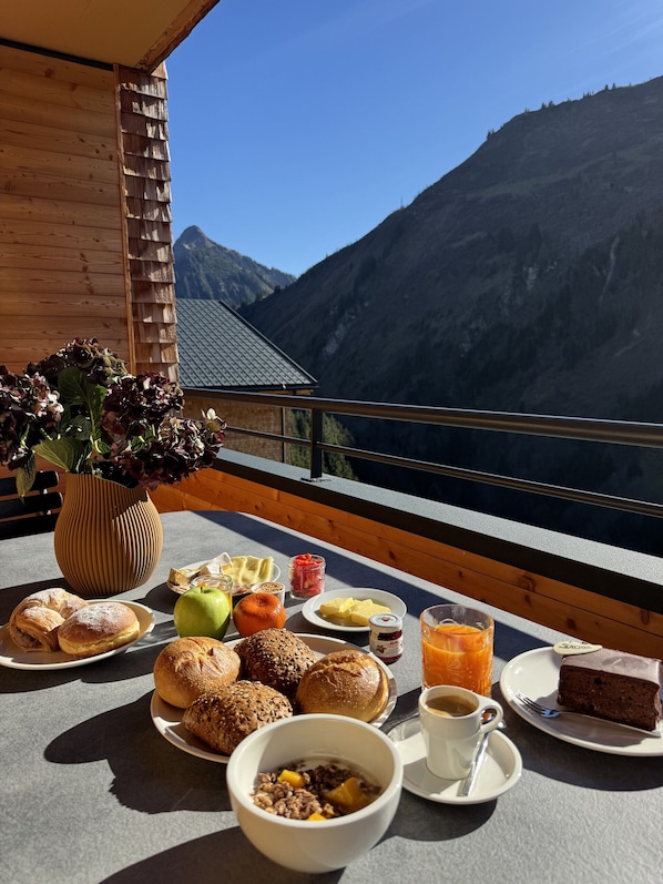 8 Personen | 3 Schlafzimmer | 90 m² | Haus 1 | 4. OG - Lust auf noch mehr Wohlfühlmomente? Gönnen Sie sich einen entspannten Aufenthalt in unseren hochwertig ausgestatteten Apartments Exklusiv. Durch die südseitige Ausrichtung genießen Sie von morgens bis abends einen spektakulären Blick in die Bergwelt rund um Damüls, bei angenehmem Wetter von der eigenen Terrasse aus.