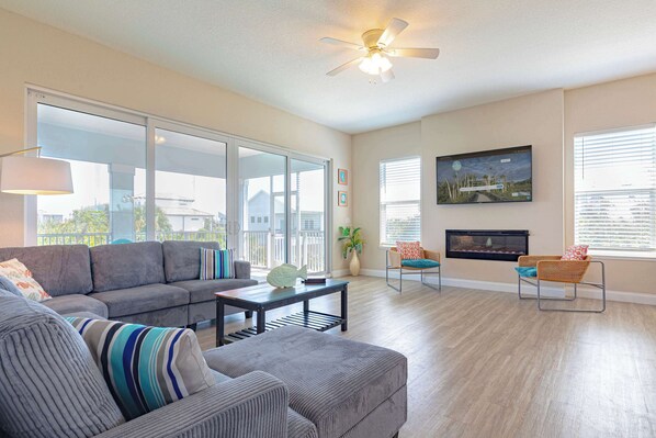 Dieses wunderschöne 5-Bett / 4-Bad haustierfreundliche und unglaublich geräumige Haus bietet Platz für bis zu 12 Personen, nur einen kurzen Spaziergang von den glitzernden Sandstränden von Palm Coast und dem malerischen Washington Oaks Gardens State Park entfernt. Diese strahlende Residenz ist die perfekte Unterkunft Kurzurlaub, um Zeit mit Freunden und Familie zu verbringen. Jedes Zimmer verfügt über einen Flachbild-Smart-TV und ist komplett mit vielen weichen Kissen und Decken ausgestattet. Der geteilte Grundriss bietet auf jeder Etage ein Hauptschlafzimmer und schafft den perfekten Raum für Familien, die bequem genutzt werden können. Das Hauptschlafzimmer im ersten Stock bietet Platz für Familien mit kleinen Kindern, da es mit einem anderen Raum mit vier Einzelbetten verbunden ist, der ideal für die Jugend ist. Der Bar / Lounge-Bereich mit üppigen Barhockern, einem Billardtisch und einem Weinkühlschrank ermöglicht den Zugang zur überdachten Terrasse im Erdgeschoss und einen eingezäunten Garten. Ein großer Grill und reichlich Sitzgelegenheiten bietet eine gemütliche Atmosphäre, in der Sie mit Freunden und der Familie unterhalten können. Das andere Schlafzimmer im Erdgeschoss verfügt über ein Kingsize-Bett und ein eigenes Bad. Im Obergeschoss blickt eine malerische private Terrasse auf die ruhige Sandstraße, ein ruhiger und friedlicher Ort, um ein Buch zu lesen oder einen Morgenkaffee zu genießen. Der Meister im Obergeschoss, der mit einem Kingsize-Bett ausgestattet ist, verfügt über eine luxuriöse begehbare Dusche, ein Doppelwaschbecken für zwei Personen und einen eigenen Eingang zum oberen Patio. Auf der anderen Seite des Flurs befindet sich das vierte Schlafzimmer mit einem Kingsize-Bett, das mit üppigen Kissen bedeckt ist, einem großen Plasma-TV und einem eigenen Bad mit einer Duschwanne. Im Obergeschoss ist das schillernde Wohnzimmer von Boden bis zur Decke reichenden Glasschiebetüren, die zum Patio führen. Der große Esstisch bietet Platz für bis zu zehn Personen und die massive Kücheninsel bietet Platz für bis zu acht Personen. Dies bietet viel Platz für große Familien oder Gruppen. Eine umfangreiche Küche mit den modernsten Geräten und Küchengeräten bietet ausreichend Platz für Dutzende von Menschen. Finden Sie Ihren glücklichen Platz auf der oberen überdachten Terrasse, lauschen Sie dem Rauschen der benachbarten Brandung und blicken Sie auf das üppige Grün, das die Rückseite des Hauses umgibt. Nur 3 Minuten zu Fuß zu einem wunderschönen, unberührten Sandstrand, den Sie sich selbst nennen können. Ihr Traumurlaub ruft, buchen Sie also noch heute!