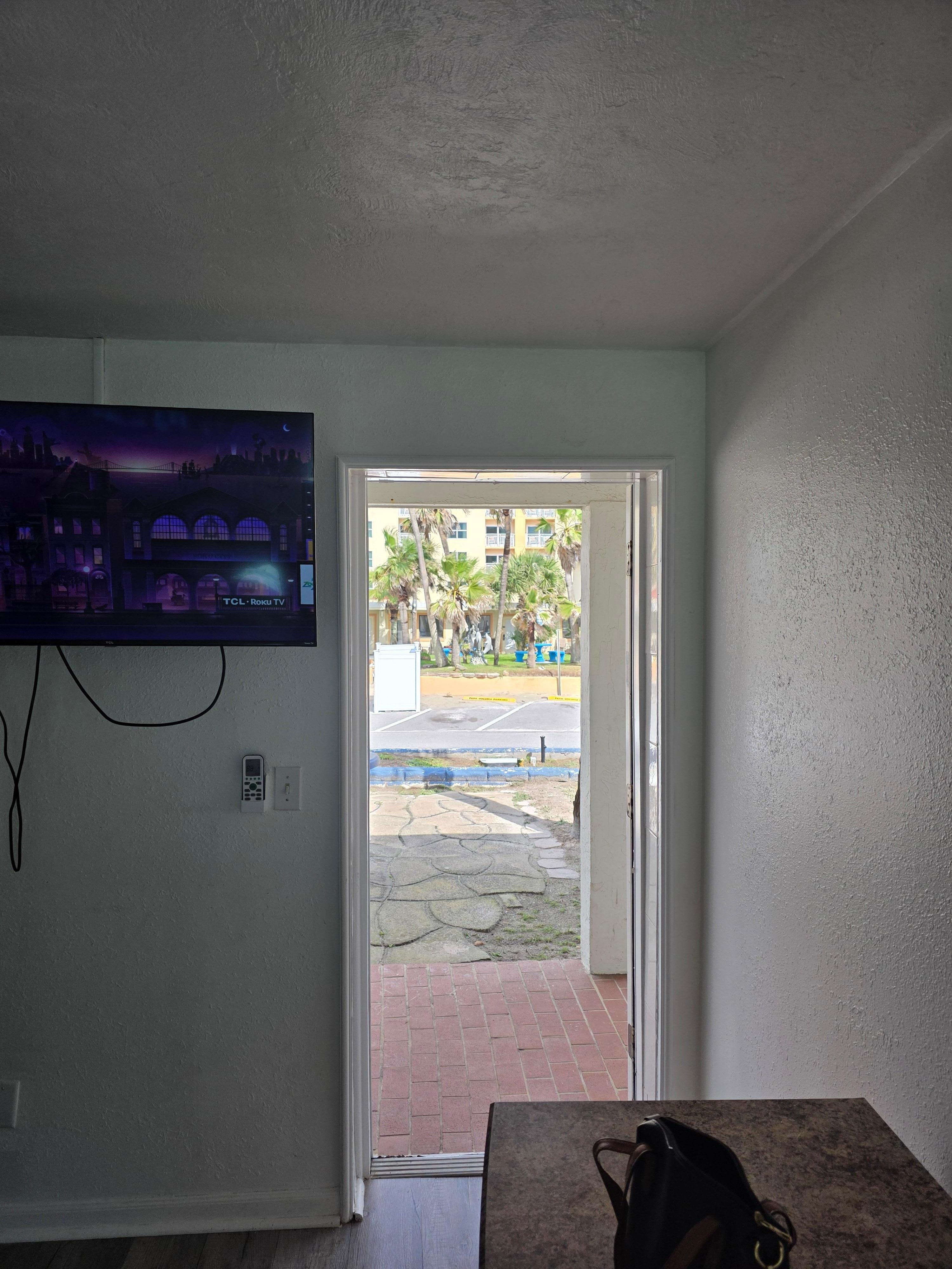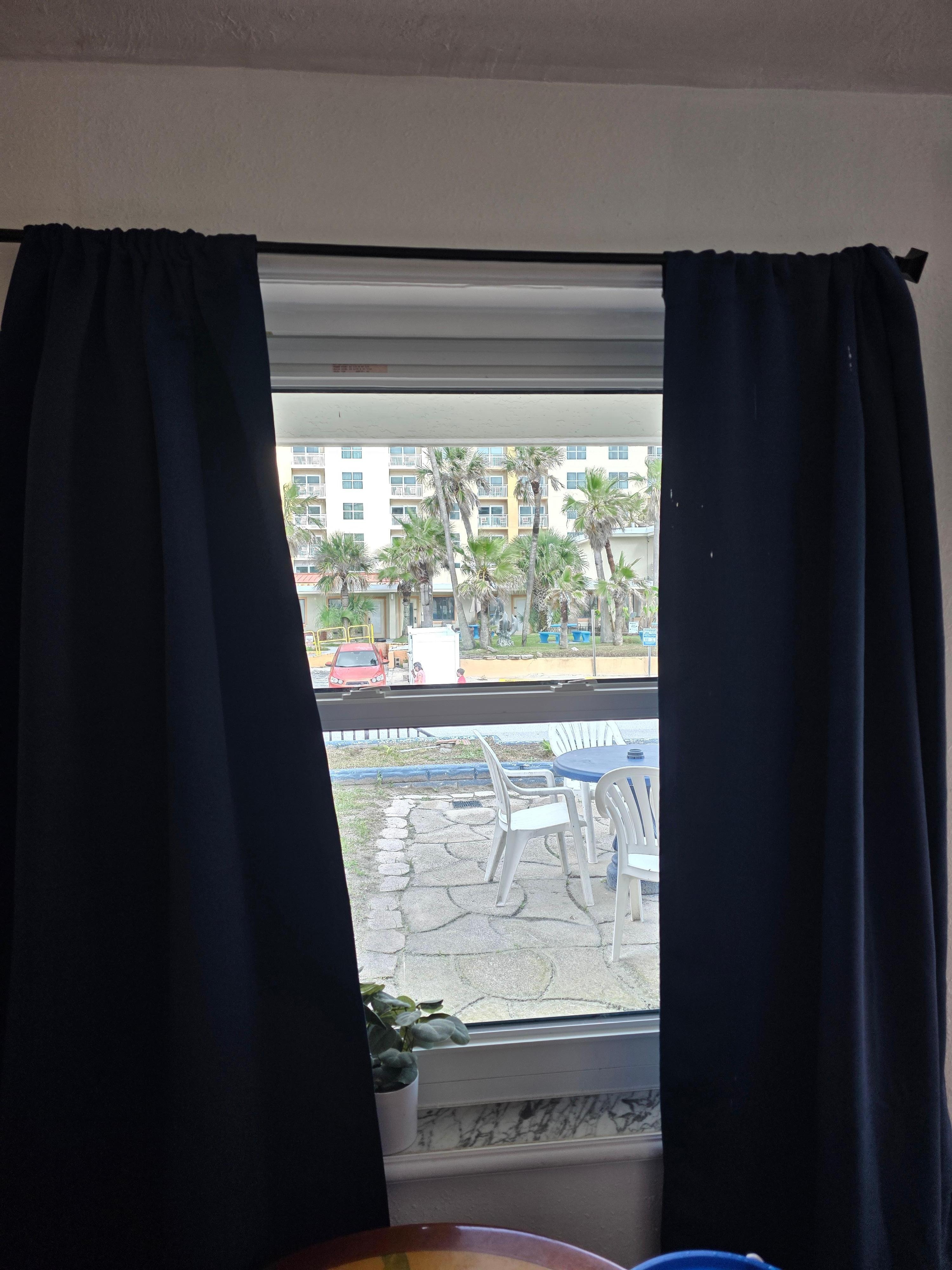 We decided to leave and book and oceanfront room down the road, we felt the picture and description are misleading. It isnt an Oceanfront Room, parking would be hit and miss as they dont have many spots. Sadly we paid for 2 nights and didn't even stay.