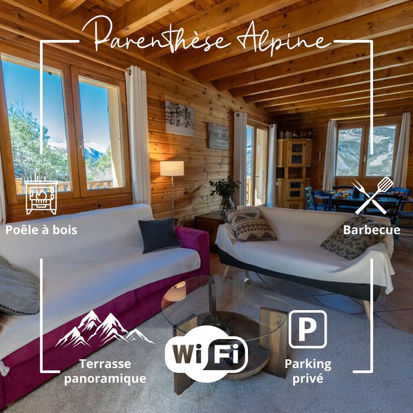 ❄️ Chalet à l'ambiance cosy et chaleureuse de 80m², très ouvert sur l'extérieur grâce à ses nombreuses fenêtres.