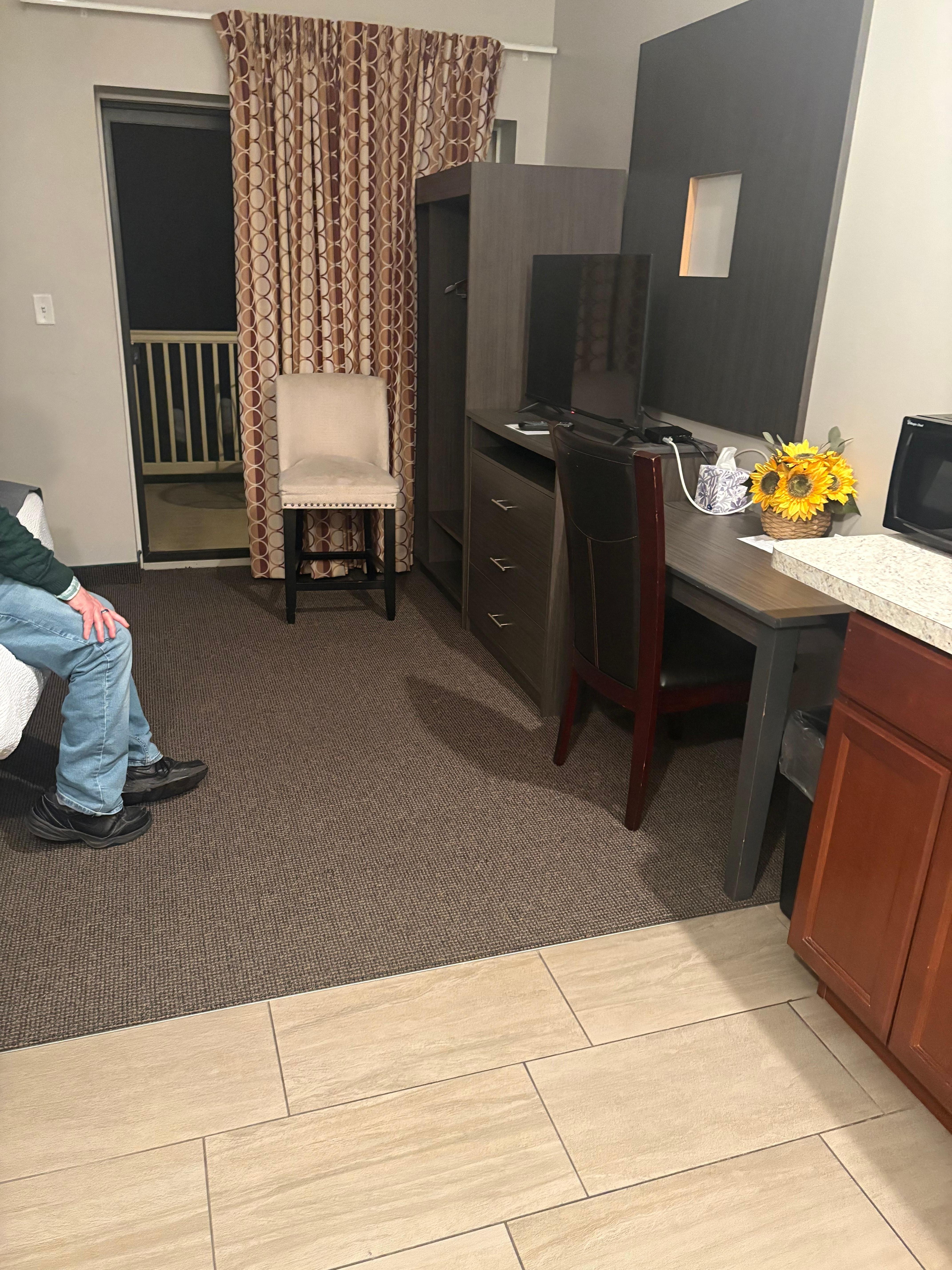 Fine place to get some sleep. I wasn’t used to the automated check in but it was pretty easy to do. The full sized fridge, stove top, microwave, cabinets etc was wasted on me but would be great for a family or as a temporary residence. Bathroom was nice. Patio was cool.