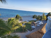 Chambre, 2 lits doubles, balcon, vue partielle sur l'océan