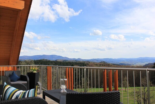 C'est le mélange de style et d'ambiance combiné à une vue magnifique qui rendra votre séjour dans notre appartement exclusif inoubliable. Profitez du feu dans le poêle avec une vue dégagée sur la Forêt-Noire et les Vosges. Cet appartement spacieux offre à eux et à leur famille assez d'espace pour se détendre et se sentir bien. L'appartement dispose de 2 chambres, d'une salle de bains et d'un grand salon, salle à manger avec cuisine intégrée. L'appartement est équipé d'un mobilier et d'appareils électriques de très haute qualité. Depuis le balcon confortablement meublé, vous pourrez profiter de la vue magnifique sur la Forêt-Noire et les Vosges. L'appartement est situé en retrait de la rue principale. Le calme et la détente sont garantis.