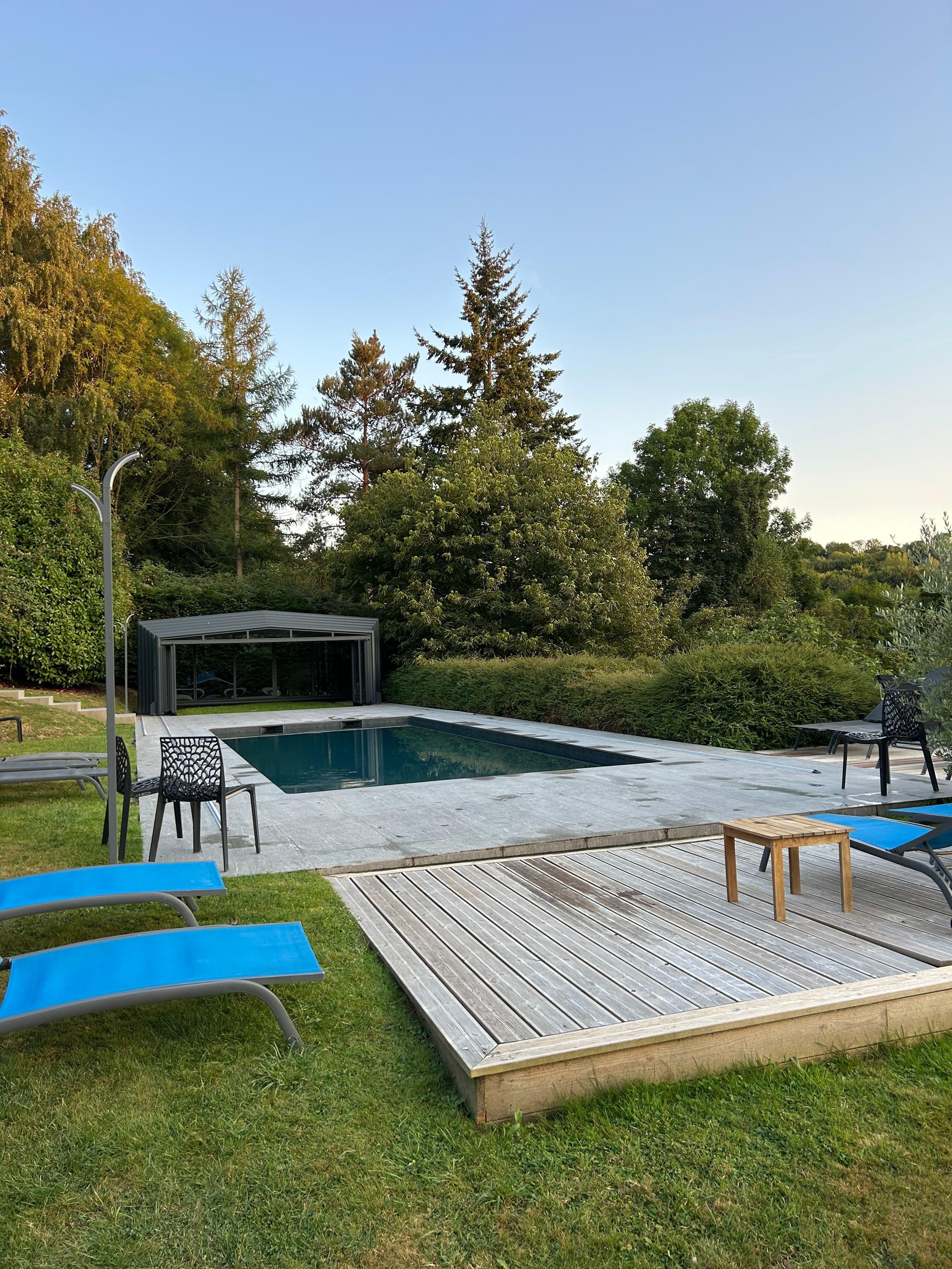 Oui, cet hébergement vous propose une piscine couverte et une piscine extérieure en saison. La piscine est accessible 24 h / 24.