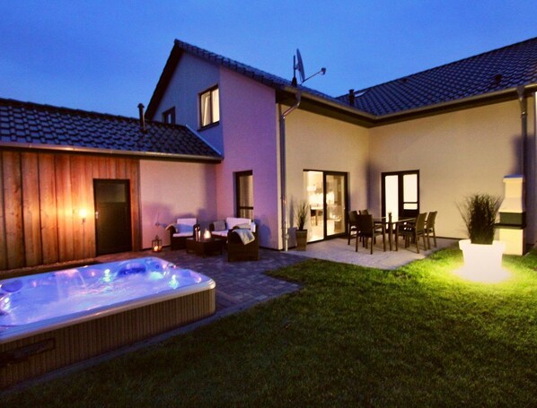 Vous recherchez un séjour de détente pour un lieu de vacances exclusif? The House Lounge House avec ce petit quelque chose pour les personnes exigeantes près du terrain de golf! Découvrez une symbiose fascinante de simplicité et d’individualité, un mélange unique de fonctions de détente et de bien-être. Lounge House, une oasis de bien-être exclusive et familiale, a été conçue avec un intérieur de bien-être moderne et de grande qualité, de manière à ce que nos clients puissent profiter de pauses détente en famille ou entre amis dans le pays de Fleesensee, loin du stress quotidien. Que ce soit pour des vacances (courtes) z. B. Faites du golf (départ 1 du parcours du château à proximité), en voyage surprise en couple ou en vacances de détente en famille ou entre amis. Dans notre maison-salon, vous vivrez toute l’année détente et paix dans une atmosphère de bien-être raffiné. Vous pouvez vous attendre à une luxueuse maison de vacances luxueuse de 128 m² inondée de lumière sur une propriété de 450 m² dotée de nombreux atouts exclusifs. Notre maison a 2 étages avec un total de 3 chambres et 2 salles de bains de luxe. Jusqu'à 6 personnes peuvent séjourner dans notre maison-salon familiale avec son propre jardin, Le bain à remous en plein air (toute l'année à 38 degrés) oublie le stress de la vie quotidienne pendant un moment et laissez votre esprit vagabonder Profitez de l'ambiance de bien-être et de bien-être exclusive de chaque saison, associée à des équipements techniques intérieurs et de haute qualité. Le jardin bien entretenu et clôturé (à l'usage exclusif) dispose de son propre jacuzzi extérieur, de 2 terrasses bien exposées et offre de nombreuses autres possibilités de détente. Arrivez, sentez-vous bien et laissez le quotidien derrière vous. Offrez-vous une pause détente dans notre salon de détente après une journée stressante et rechargez vos batteries. Prends du temps pour toi. Saunas, lire un bon livre, se détendre sur de confortables chaises longues dans le jardin, se détendre dans le bain à remous extérieur du jardin ou tout simplement ne rien faire. Explorez notre magnifique paysage à pied ou à vélo (location de vélo à distance de marche), jouez au golf (parcours d’initiation dans le club de golf) ou nagez sur la plage à proximité. Commencez la journée avec un délicieux petit-déjeuner (service de livraison de pain) sur notre terrasse exposée au sud, puis commencez votre journée en beauté Une fois de retour à la maison, vous entrez dans les terrasses ensoleillées avec le grand jardin attenant au salon par une grande porte coulissante (incl. insectifuge). Il y a 2 terrasses bien exposées et un grand jardin bien entretenu. Prenez place sur des meubles de jardin de haute qualité. Profitez d'une soirée de détente avec un délicieux coucher de soleil glacé à base de lunettes Leonardo dans notre ensemble lounge chic, qui est également le deuxième. La terrasse est disponible. Détendez-vous sur 2 chaises longues (incl. Editions) dans le jardin, qui sont également utilisés entre ou après le plaisir du sauna Un barbecue en brique est synonyme de plaisir culinaire au barbecue (incl. Couverts de barbecue). Détendez-vous de vos nombreuses activités sous les étoiles dans le jacuzzi extérieur de l'hôtel, situé dans le jardin. Profitez toute l’année de la température de l’eau à 38 ° C et du plaisir bouillonnant des 45 buses Hydro-Massagejet Non seulement le ciel étoilé, mais également l’intégré dans la piscine, les 10 lampes multi-LED dimmables aux couleurs changeantes permettent à vos vacances de se détendre en toute saison. Profitez des plaisirs du sauna dans notre propre sauna spacieux dans le bain de l'étage supérieur (l'un des 2 bains �� remous total). Une station d'accueil iPod incl. La radio vous permet de vous détendre avec votre propre musique. Sur les 2 chaises longues du jardin, vous pourrez vous détendre entre ou après vos séances de sauna. Le salon et la salle à manger aux couleurs chaudes exclusifs et conçus avec un canapé d'angle bien-être, un salon et une cuisine design brillante et entièrement équipée vous invitent à des soirées romantiques avec un bon verre de vin devant la cheminée à gaz. Vous pourrez savourer des délices culinaires ou des soirées de jeux à la table à manger munie de 6 chaises en cuir. Sur le canapé d'angle, vous passerez des soirées télévisées passionnantes grâce au grand écran plat Full HD mural de 42 pouces et à la télévision SKY. Même par mauvais temps, il n’ya certainement pas d’ennui ici. La maison dispose d'un accès DSL-WLAN gratuit et de jeux de sociét�� pour petits et grands. Après tant de d��tente, installez-vous dans 3 chambres de bien-être avec des lits de qualit�� dans un sommeil profond et paisible et attendez avec impatience le lendemain. Nos vacanciers bénéficient de nombreuses conditions spéciales de la part de nos partenaires de coopération, telles que: Par exemple, au Golf & Country Club Fleesensee, au Land Fleesensee SPA et à la location de vélos.