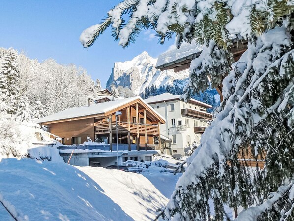 Belle maison à 2 apts "Chalet La Muntaniala", année de construction 2018. Dans le quartier de Spillstatt, à 650 m du centre, orientée sud. A usage privé: jardinet, meubles de jardin. Infrastructures de la Maison: local pour les skis, chauffage central, appareil de séchage de chaussures à ski. Nettoyage (en sus). En hiver, merci de prévoir des chaînes. Place de parking (couvert) près de la maison. Supermarché 650 m, centre commercial 650 m, restaurant 600 m, boulangerie 700 m, location de bicyclettes 900 m, centre à 5 minutes à pieds, arrêt de bus "Altersheim" 200 m, gare ferroviaire "Grindelwald Dorf" 600 m, piscine 2.5 km, piscine couverte 700 m. Terrain de golf (9 trous) 3 km, tennis 2.5 km, golf miniature 900 m, centre sportif 700 m, train de montagne 650 m, télécabine 900 m, location de ski 800 m. Arrêt du ski-bus 50 m, ski de fond 2.5 km, jeux pour enfants 700 m. Les lacs connus sont facilement accessibles: Thuner-/Brienzersee 18 km. Veuillez noter: sans ascenseur. Ski-bus gratuit. Le propriétaire habite dans la même maison.
