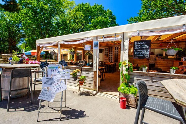 Après l’effort, place aux plaisirs gourmands et aux moments de convivialité. Le bar-restaurant du camping, ouvert sur la période d’ouverture de l’établissement, vous accueille pour un déjeuner, un dîner ou un apéritif en terrasse. Un dépôt de pain est également proposé pour bien commencer la journée.