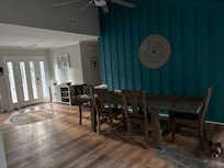 Walk out the front door, take a left and across the street you will see a hidden narrow wooded trail which leads to a gorgeous sandy beach in 5 minutes! (Make note of the marker # so you can find your way back.) The house is all one level, no steps, ideal for folks like my husband who uses a rolling walker. (Hopefully the owner will have a safety rail installed in the huge step in shower soon. Also recommend they get a coffee pod machine, though customer service loaned us one!) CS was excellent, they came and removed the child safety devices from the door knobs for us. The pool was inviting but too cold in November. We took our standard poodle and it was great having a fenced in yard. However, I covered a large gap beneath the gate with a stiff outdoor rug as she could have crawled beneath it. And the gardeners left the gate wide open! So if you take a dog, beware of the gate. Trash pick up guys didn't put the rug back up so another risk. The house is spacious, lots of TVs, sofas, dining areas. Lots of towels and blankets available. Icemaker is slow, no salt & pepper. Take extra dishwasher pods and laundry detergent. Our favorite restaurant was the waterfront quaint patio Fishcamp, several miles away but worth the drive!