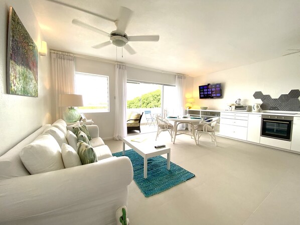 Apartment 421 befindet sich in der kühlen und luftigen ruhigen vierten Etage, mit üppigem Garten und Meerblick. Die Einrichtung ist frisch und modern und bietet alle modernen Annehmlichkeiten, die Sie von einem Zuhause in der Ferne erwarten. Es ist der perfekte Weg, um in Ihrem Urlaub in Barbados zu entspannen.