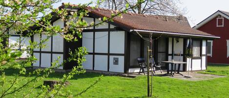 Das massiv errichtete, ebenerdige Ferienhaus 313, vom Typ Kogge, befindet sich im absolut autofreien Teil unseres schönen Feriendorfes - ruhige Randlage mit Blick auf die Wettern und einen alten Obsthof. Das Haus verfügt über ca. 60 m² Wohn-/Nutzfläche und kann mit bis zu 4 Personen (+1 Kleinkind im Kinderreisebett) belegt werden. Das Ferienhaus bietet Ihnen neben einem Schlafraum mit einem Doppelbett, einem Schlafraum mit 2 Einzelbetten, einem Badezimmer (Dusche / WC) und einem Abstellraum ein geräumiges Wohnzimmer mit offener Küche (Ceran-Kochfeld/Backofen, Kühlschrank/Gefrierfach, Mikrowelle, Spülmaschine) und Essplatz. Zugang zur möblierten Terrasse vom Wohnzimmer. Für den Gepäcktransport steht im Abstellraum ein Kofferwagen zur Verfügung. Nichtraucherhaus - kostenloses WLAN - Haustiere nicht erlaubt - Brötchenservice von Ostern bis Oktober!
