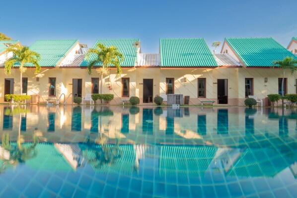 Das Resort ist in einem guten, gepflegten Zustand, auch der Pool. Wir hatten ein Zimmer im ersten Stock mit Balkon und Poolblick.