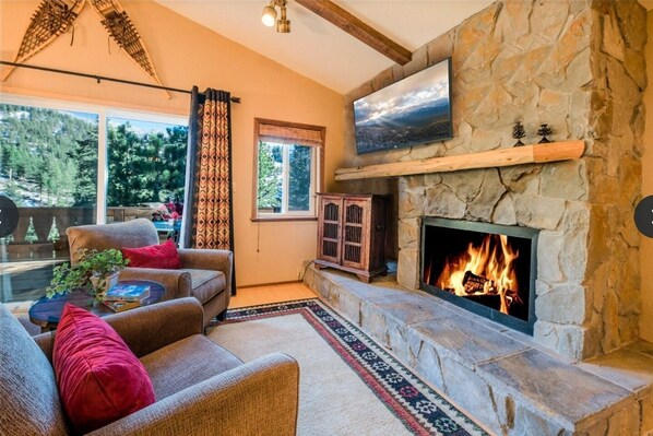 En entrant dans la maison, vous serez immédiatement attiré par les grandes fenêtres et les portes coulissantes en verre qui mènent à la terrasse arrière avec une vue enchanteresse sur Diamond Peak Ski Resort et la forêt nationale de Tahoe. Profitez de votre café du matin pendant que vous prenez tout cela et échappez à votre vie quotidienne. Le salon comprend des sièges confortables pour 5, une grande télévision à écran plat et un foyer au gaz. La salle à manger comprend des bancs de fenêtres autour de la table de la salle à manger et s'asseoir à côté des grandes fenêtres pour continuer à profiter des vues incroyables que cette maison a à offrir. Adjacent à la salle à manger, vous trouverez la cuisine entièrement équipée avec de nouveaux appareils en acier inoxydable, beaucoup d'espace de comptoir et prête pour le chef du groupe!