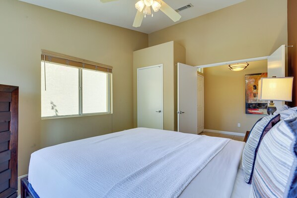 Les chambres climatisées de Resort Perks, Patio & Gas Grill: Indio Retreat! incluent des cheminées et un fer / une planche à repasser. Dans ce cottage 3 étoiles, les chambres possèdent une cuisine avec une plaque de cuisson, un micro-ondes, une batterie de cuisine, de la vaisselle et des ustensiles et un lave-vaisselle. Les salles de bain possèdent une baignoire ou une douche.