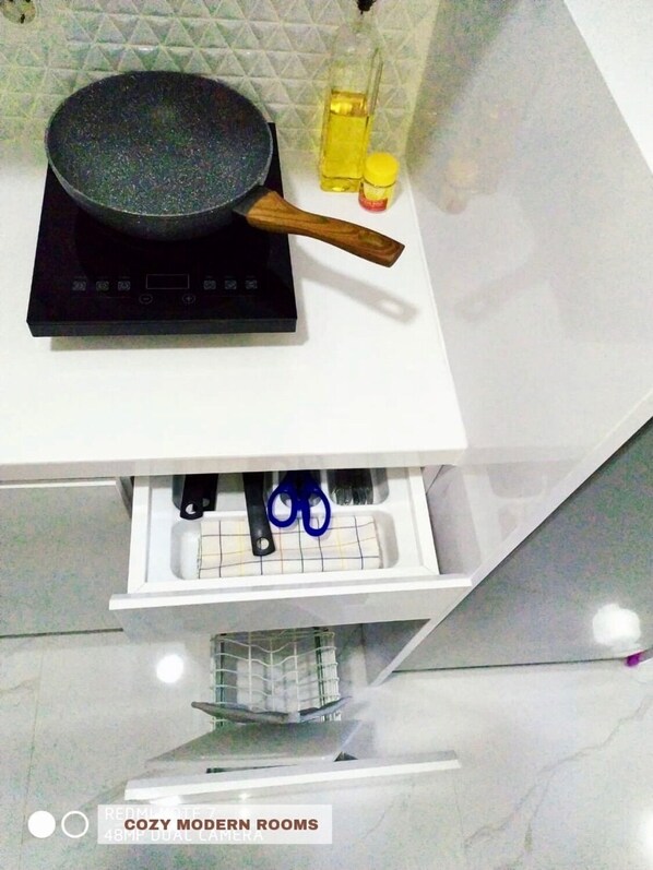 Les chambres climatisées de cet appartement incluent un sèche-cheveux et un fer / une planche à repasser. Les chambres ont une cuisine avec un micro-ondes, une batterie de cuisine, de la vaisselle et des ustensiles et un cuiseur de riz.