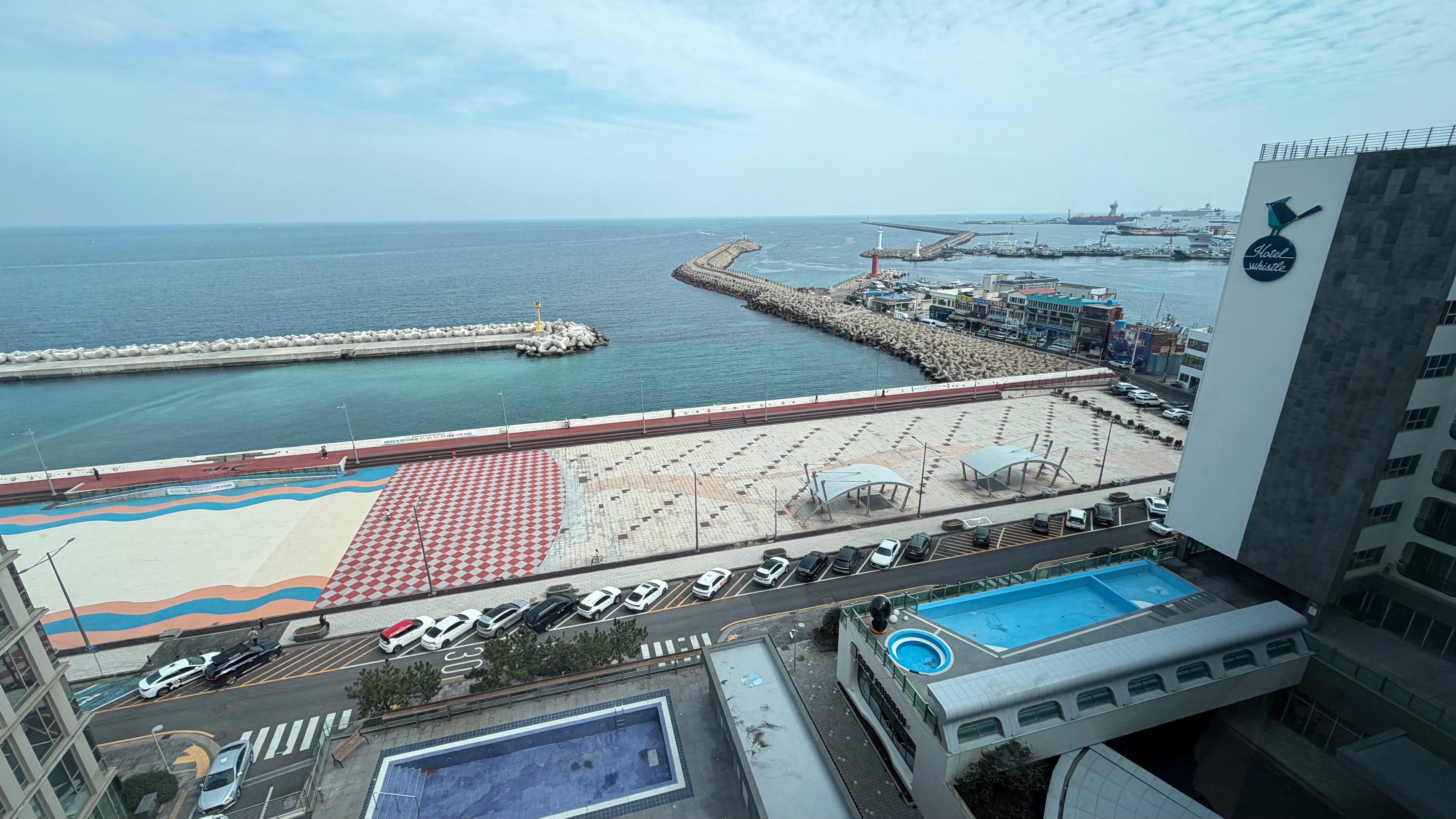 Well-located hotel in Jeju city, it is very practical if only a bit impersonal. The room was good, clean and not too small with a sliver of a view of the ocean. We had a king-sized bed for which they clearly did not have large enough linen, but the problem was solved in typical Korean fashion by using two partially-overlapping duvets... not pretty, but it worked :-) There's a bakery on the ground floor, in case you want to grab a quick bite, but avoid the fried chicken restaurant (it's always depressingly empty and too slow). Overall not a bad choice for just a couple of nights.