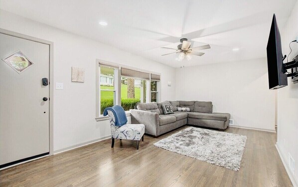 Recently remodeled home with bedrooms and living spaces on the ground floor